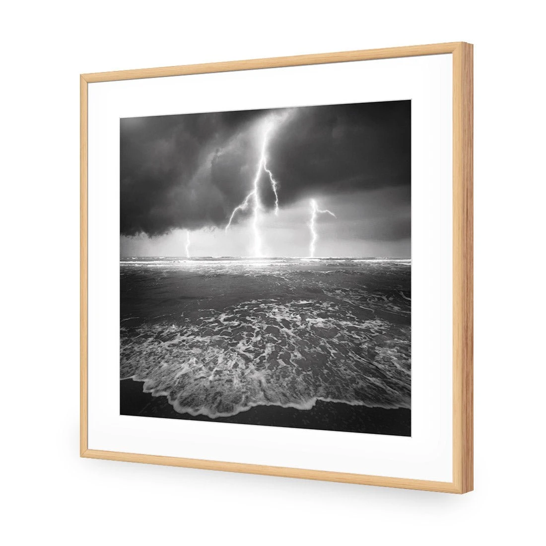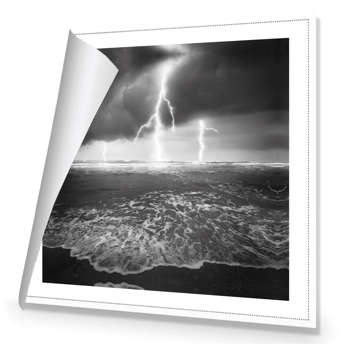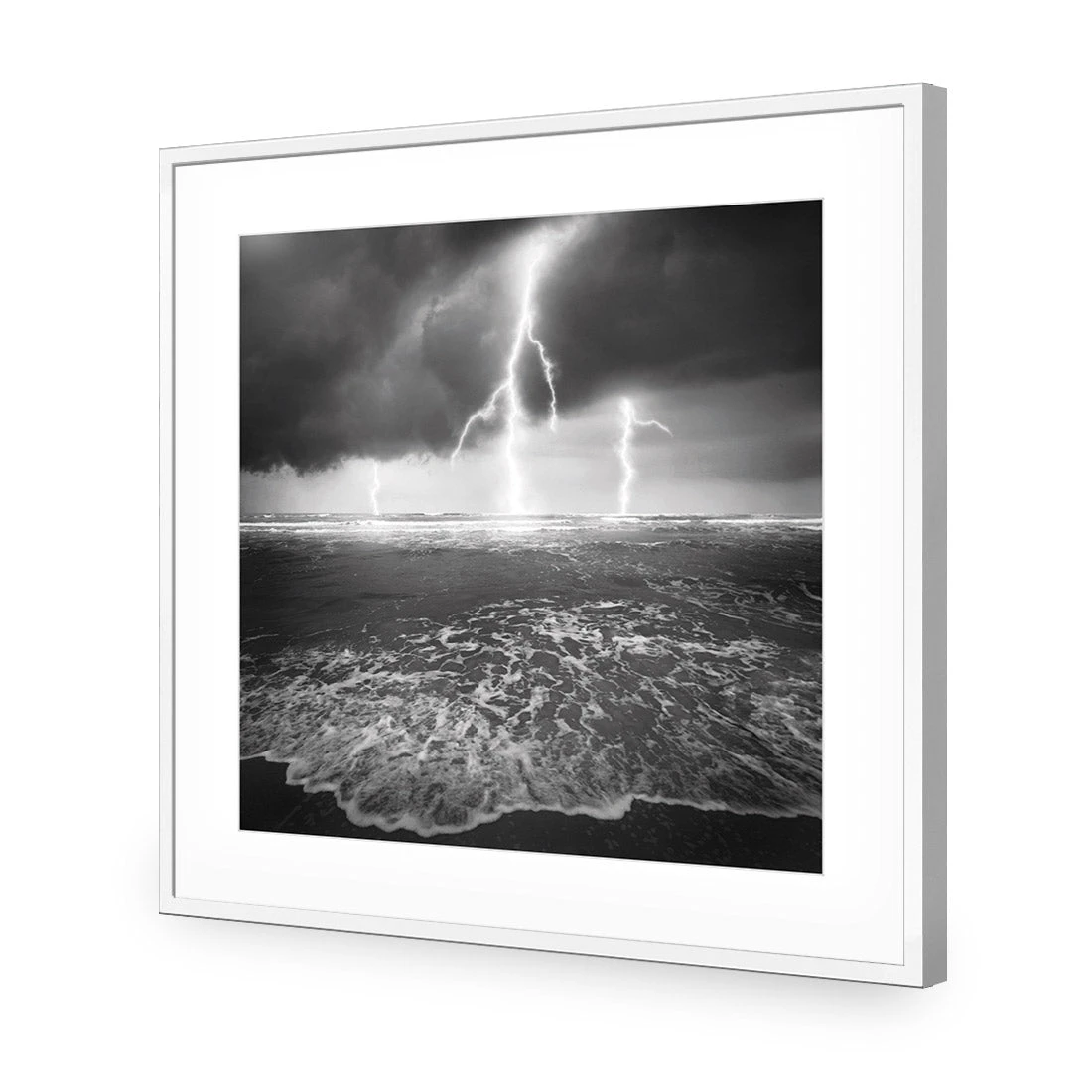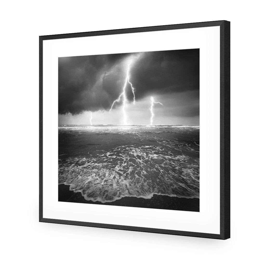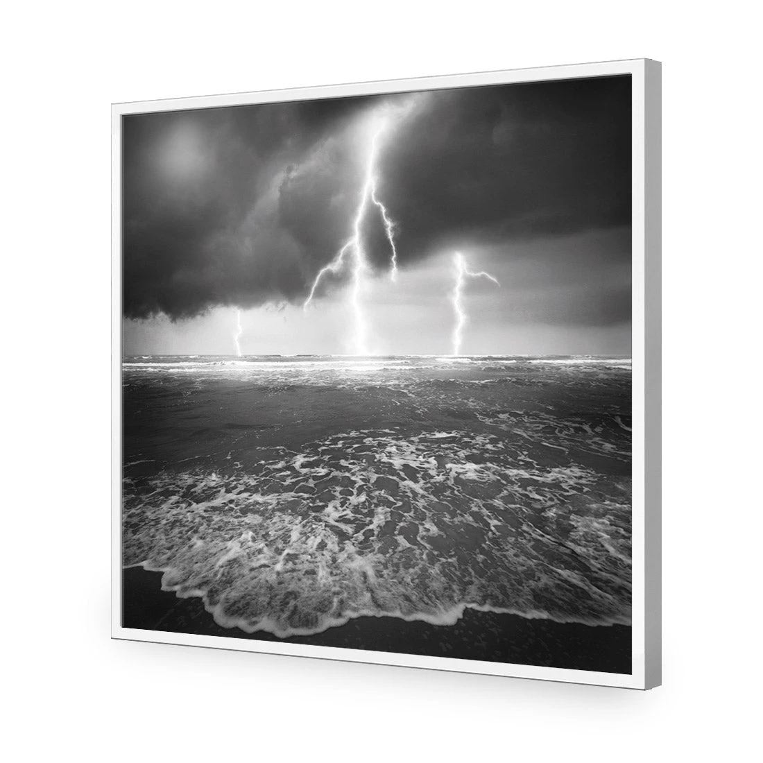 Lightning Beach, Black And White (Square)
