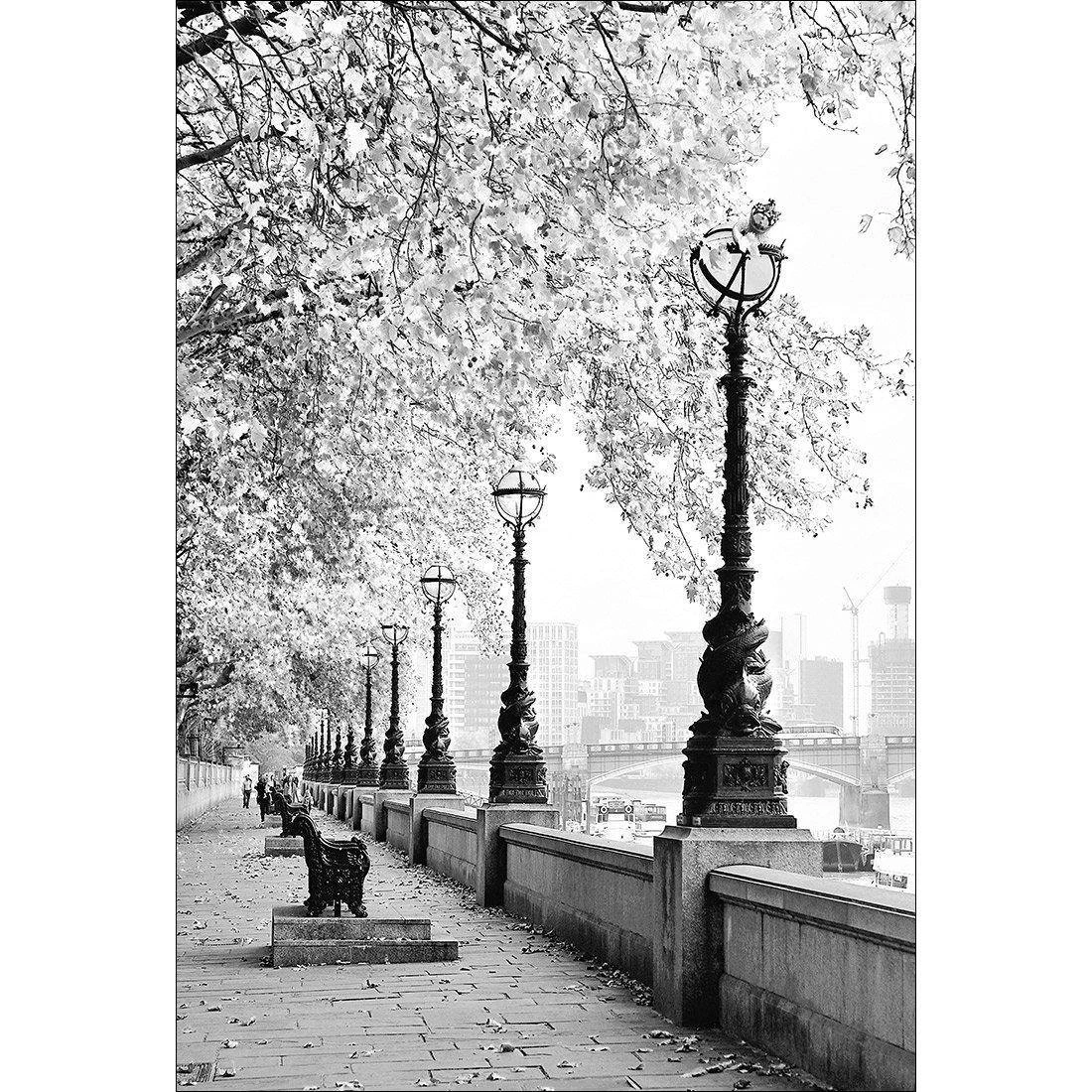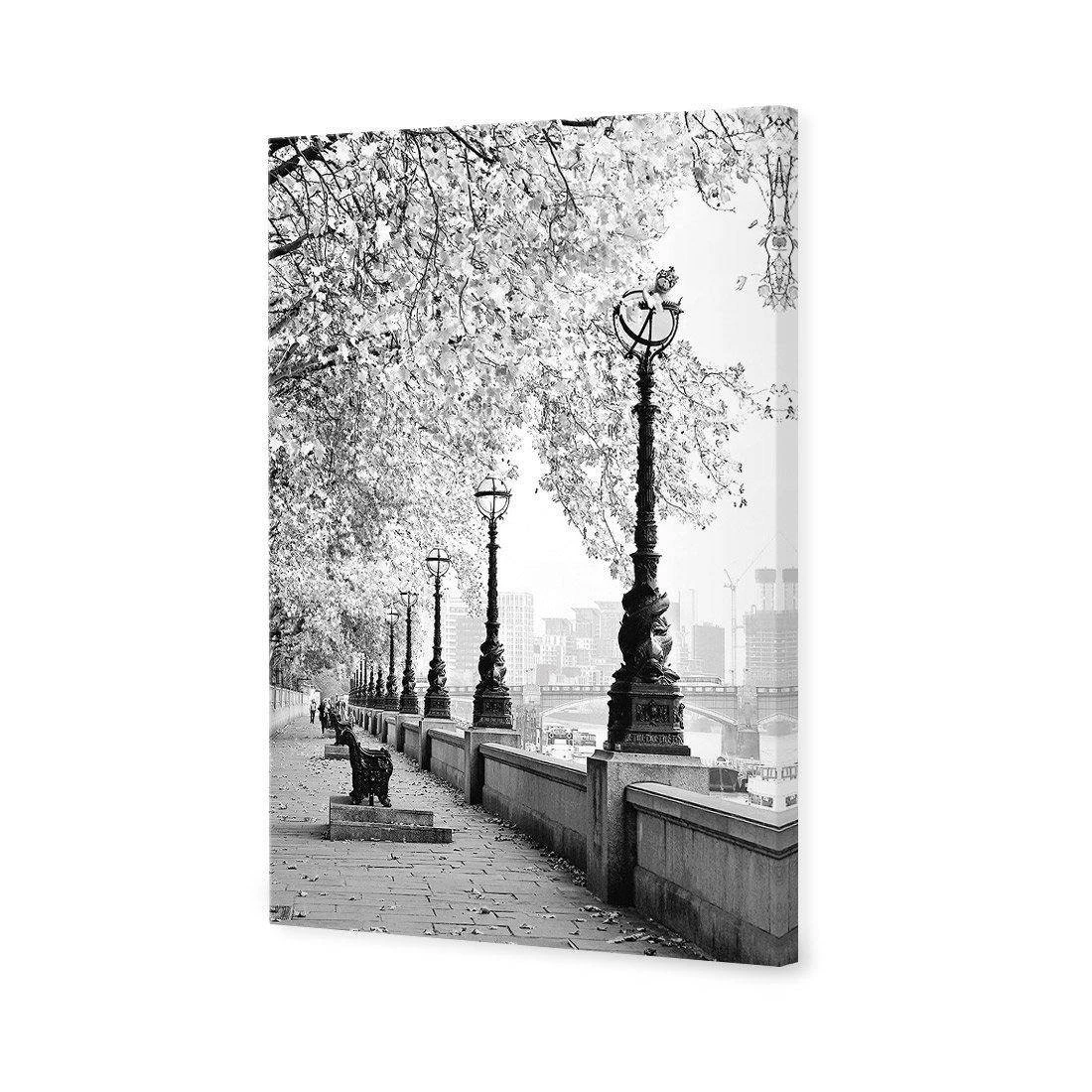 London Riverwalk, B&W Rectangle Canvas Art