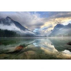 Misty Mountain Lake Canvas Art